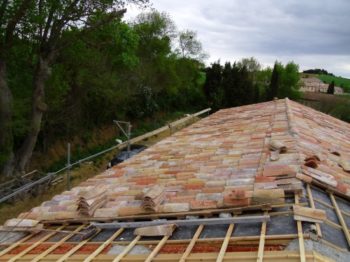Pour la tuile Canal elle s’utilise surtout en rénovation sur bâtiment ancien où aux abords de monument classé. Tout en respectant les techniques de mise en œuvre, scellement au mortier de chaux des devants de toit communément appelé égout ainsi que les rives et les faîtages.